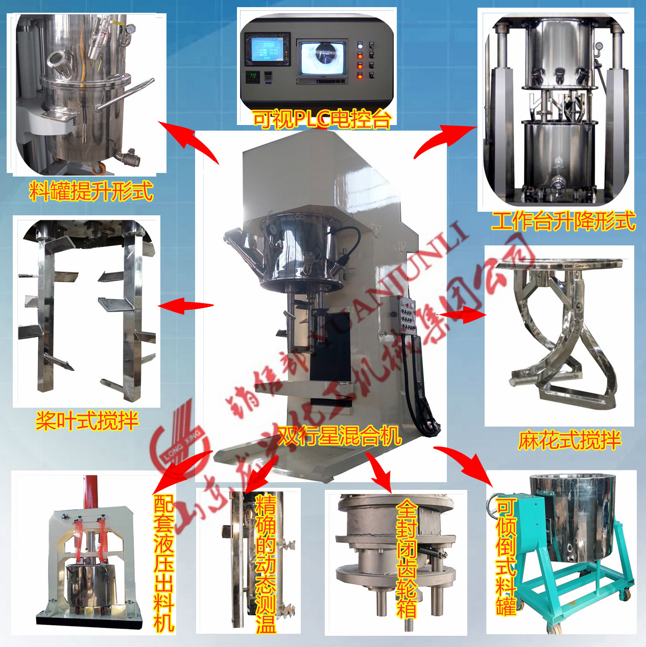真空型雙行星混合攪拌機適用于化工、輕工、食品、電池漿料、制藥、建材、nong藥等行業所需的多組份固—固相、固—液相、液—液相物料的混合、反應、分散、溶解、調質等工藝,如硅酮密封膠、硅酮結構膠、有機硅油墨、顏料、粘膠劑、密封膠、灌裝膠軟膏、糊狀物料、潤滑脂、油漆、膏狀化妝品、膏狀食品、添加物等多種高粘稠物的制備。使用粘度范圍1-5萬厘泊左右。攪拌器的形式,根據物料要求可為多層槳葉式、框式、蝶式、渦輪式等