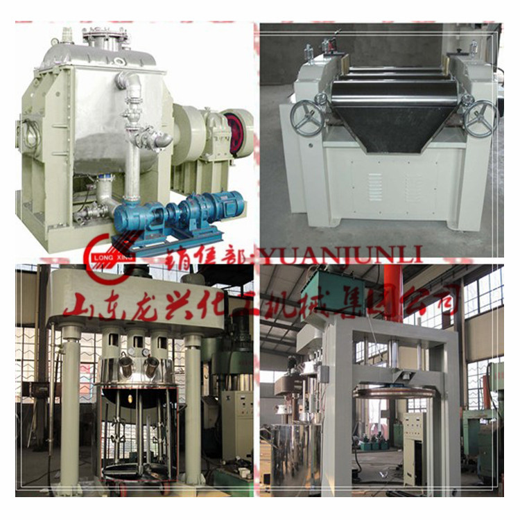 反應(yīng)釜—107膠生產(chǎn)→捏合機(jī)--玻璃膠基料制作→三輥機(jī)--物料研磨→強(qiáng)力分散機(jī)/行星攪拌機(jī)/動(dòng)力混合機(jī)--分散、攪拌、混合、反應(yīng)、抽真空→液壓出料機(jī)--液壓出料→全自動(dòng)/半自動(dòng)灌裝。用戶可根據(jù)實(shí)際需求對設(shè)備進(jìn)行選型。